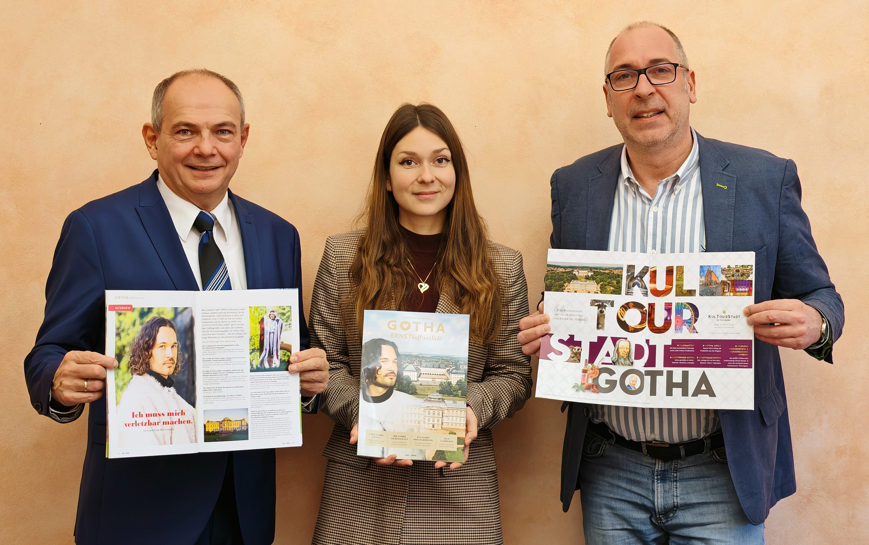 Am 11. Dezember 2025 präsentierten Oberbürgermeister Knut Kreuch, Maya Heß, Geschäftsführerin der KulTourStadt Gotha GmbH, sowie Peter Rüberg, Redaktionsleitung der RÜBERG GmbH, die neue Ausgabe des Residenzstadt-Magazins im Rahmen der städtischen Pressekonferenz. Nach dem erfolgreichen Start des Magazins „Gotha l(i)ebenswert“ im Jahr 2024 erscheint nun die inhaltlich weiterentwickelte zweite Ausgabe unter dem Titel „GOTHA – ERNSThaft verliebt“.